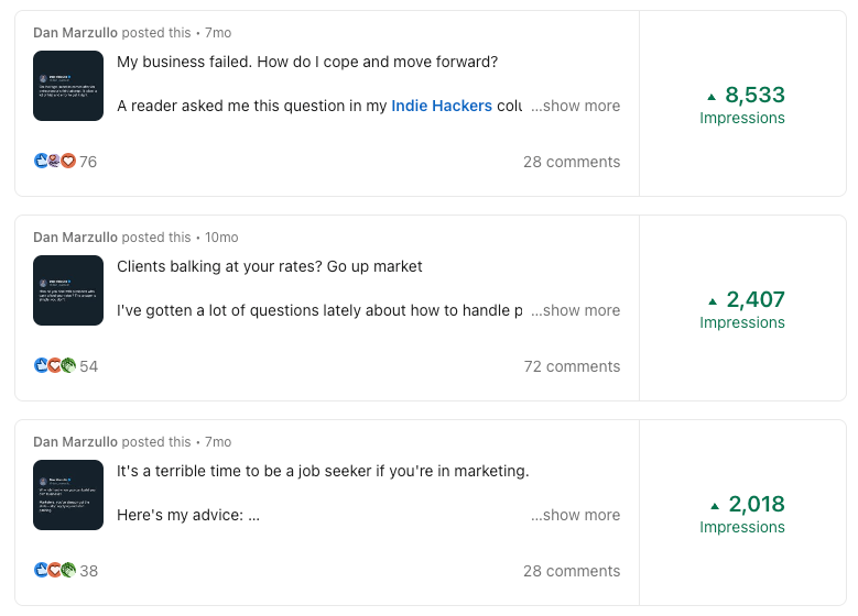 And if you already have blogs, newsletters, or podcasts, I can repurpose those into new posts that reach your audience on LinkedIn.